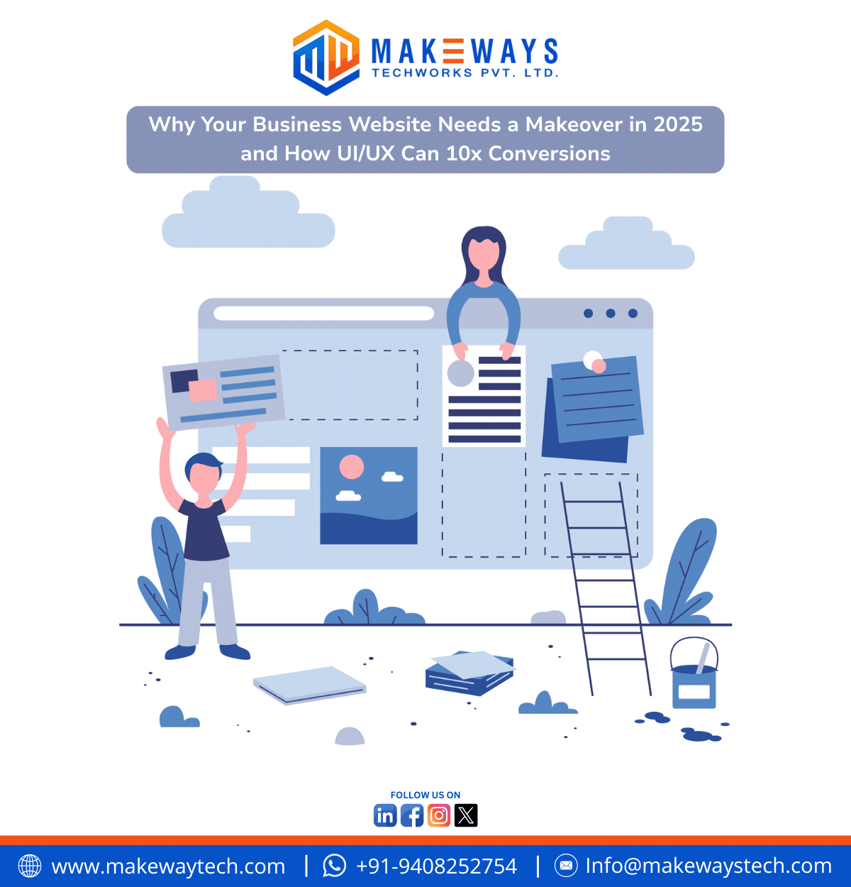 In 2025, your website isn’t just a tool — it’s your brand ambassador. A strategic UI/UX-focused makeover can dramatically enhance user experience, boost conversions, improve SEO, and build credibility. At MAKEWAYS TECHWORKS, we specialize in crafting modern, responsive, and conversion-driven websites tailored to your industry. From UI/UX design to full-stack web and mobile development, cloud solutions, and AI-powered enhancements, we ensure your business website isn’t just current — it’s future-ready.